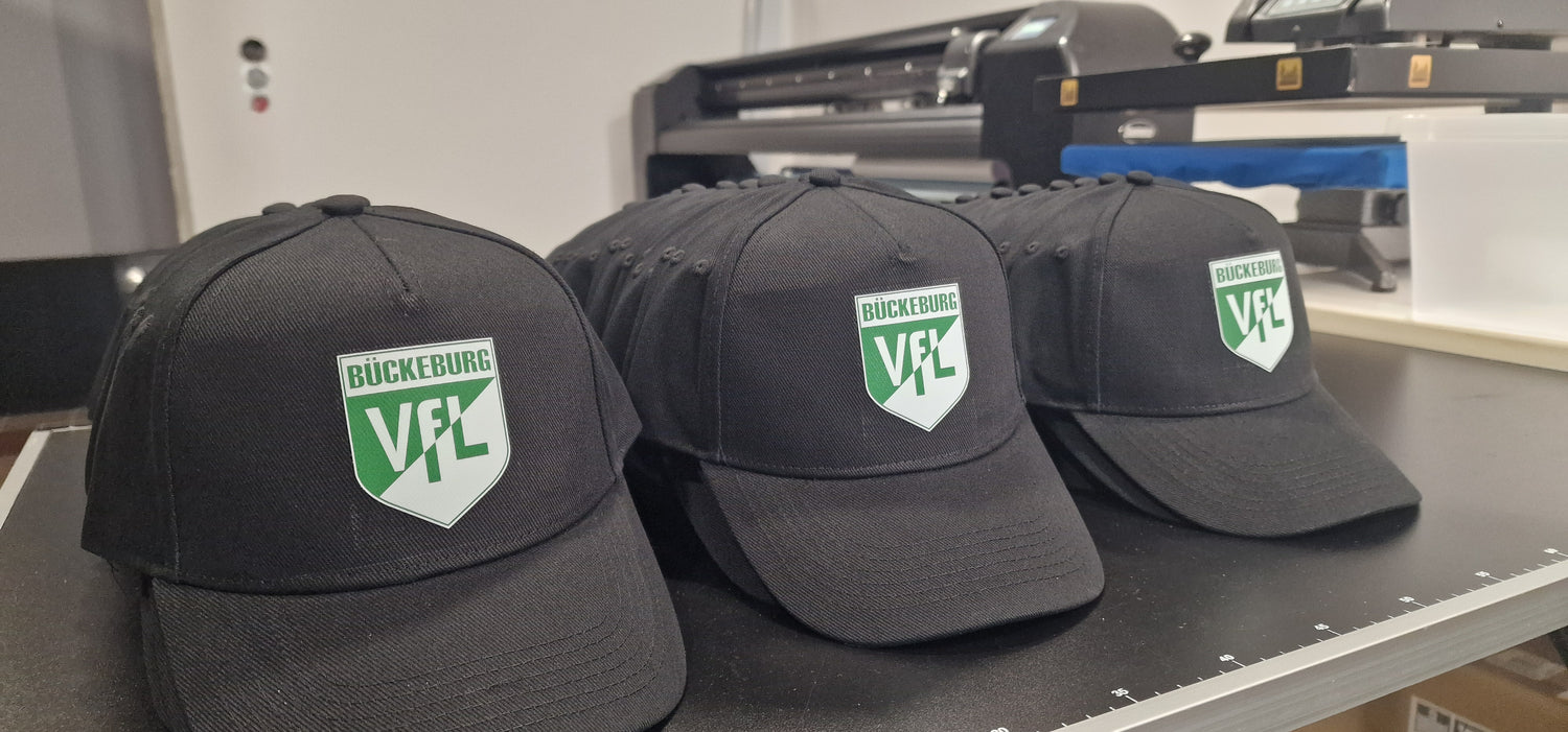 Für den VfL Bückeburg haben wir individuell produzierte Kappen im DTF-Druckverfahren umgesetzt. Dabei stand eine saubere, langlebige Veredelung sowie eine präzise Umsetzung des Vereinsdesigns im Fokus. Durch den Einsatz moderner Drucktechnik konnten wir eine hohe Detailgenauigkeit und Farbbrillanz erzielen. Das Ergebnis sind hochwertige Kappen, die sowohl im Vereinsalltag als auch bei Veranstaltungen professionell eingesetzt werden können.