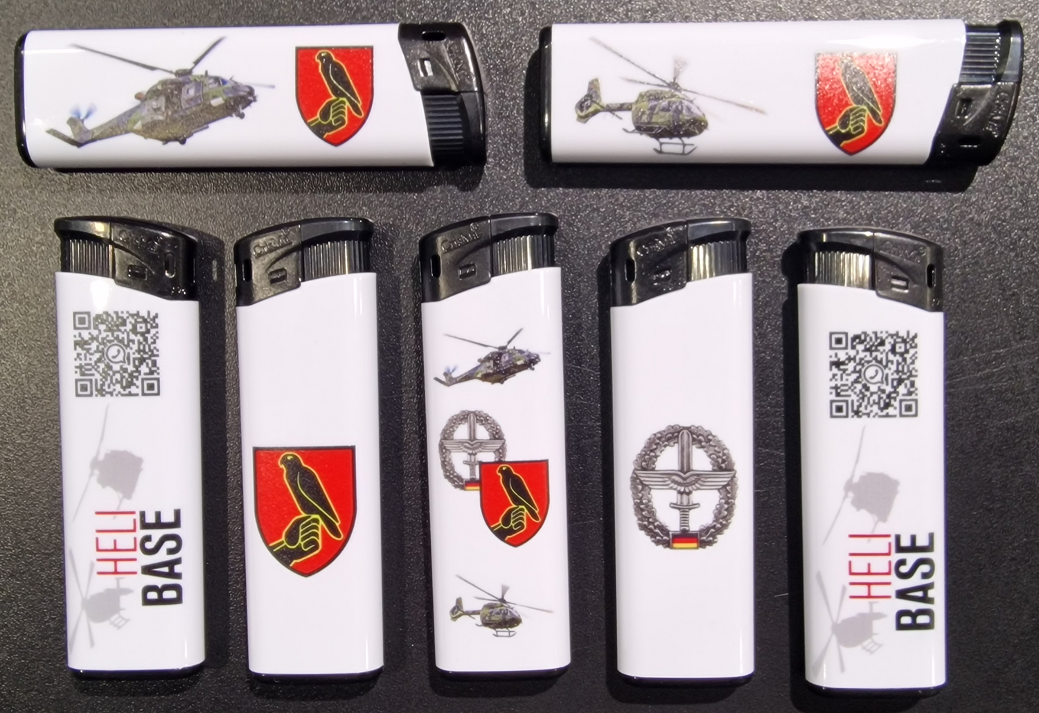 Für die UHG Helibase realisieren wir seit mehreren Jahren verschiedene Merchandise-Artikel, unter anderem Feuerzeuge im UV-Direktdruck. Dabei legen wir besonderen Wert auf eine präzise, langlebige Bedruckung und eine gleichbleibend hohe Qualität. Die langjährige Zusammenarbeit ist geprägt von Vertrauen, Zuverlässigkeit und einer flexiblen Umsetzung individueller Anforderungen.
